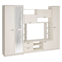Гостиная Марта – это отличное решение для меблировки гостиной. Тёплые оттенки сделают атмосферу гостиной уютной. Кроме того, гостиная Марта содержит все необходимые модули. Шкаф, полки, ящики и нишу для одного из главных элементов — телевизора. Зеркало в полный рост визуально расширит пространство. Множество расцветок на выбор.