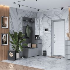 Мебель оснащена надежной немецкой фурнитурой «Hettich, во всех модулях серии «Лючия» в декоре «дуб оксфорд серый» устанавлена одинаковая лицевая фурнитура под состаренное серебро, поэтому шкафы для одежды и тумбы могут быть использованы для обоих помещений.